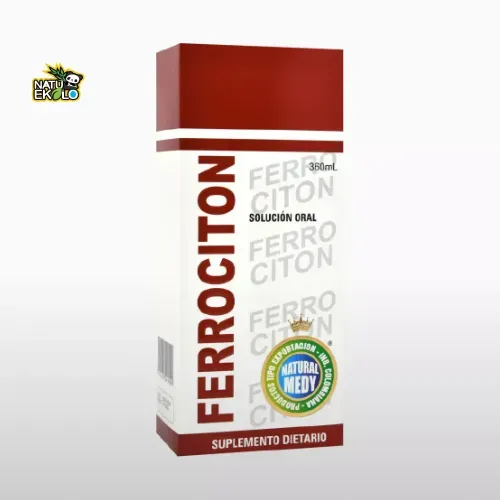 Ferrociton (Hierro), Suplemento Dietario con Hierro, Extracto de uva, espinaca y vitaminas del complejo B. Ideal para personas con escasez de glóbulos rojos, combate anemia y cansancio físico.